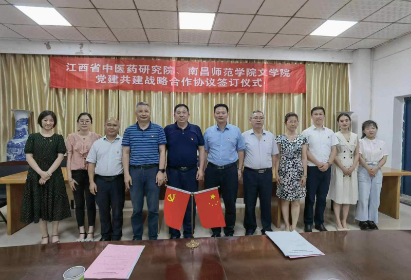 为充分发挥基层党建核心引领作用,构建结对共建、双向促进、共同提高的基层党建格局,向建党一百周年献礼,6月18日,江西省中医药研究院与南昌师范学院在南昌师范学院文学院举行党建共建战略合作协议签订仪式。省中医药研究院院长何国平、党委书记刘晓青,南昌师范学院文学院党委书记蔡卫文、院长韩春萌等出席仪式。