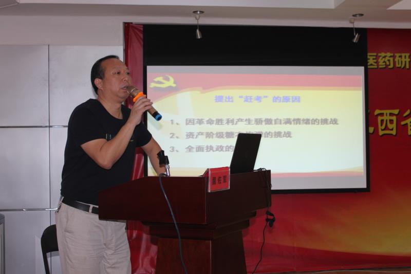 为进一步贯彻习近平总书记管党治党思想,加强党的建设、营造风清气正的党内政治生态,6月26日上午,江西省中医药研究院党委书记魏佐军以《“赶考”路上全面从严治党》为题讲授专题党课,全院共50余名党员干部职工参加本次学习。