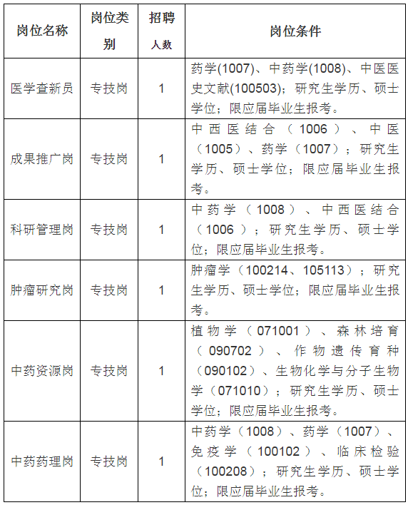 1.以上岗位条件中专业名称后的数字为学科和专业代码。