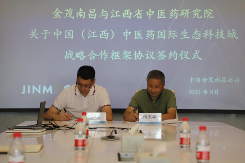 院长何国平代表江西省中医药研究院和金茂南昌总经理陈亮签署战略合作框架协议
