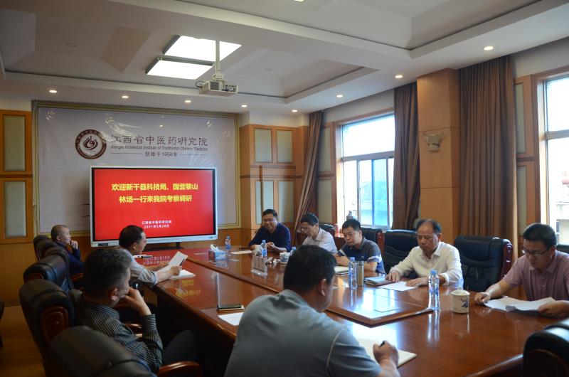 5月28日,新干县科技局局长朱年庆、副局长胡建如、国营黎山林场书记杨国虎、股长何福林、新干县赣枳中药材有限公司总经理黄友荪一行5人来我院考察调研,双方就共同打造“中药科研试验基地”、合作建设“中药材生态种植示范基地”及“中医药科普教育基地”进行了深入交流。我院副院长余炅出席会议,中药研究所、科技科相关人员参加会议。