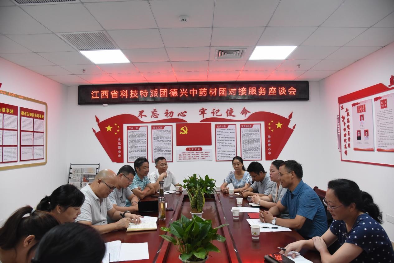 7月15日,“德兴中药材团”全体团员与对接服务企业负责人在德兴市科技局举行座谈会,就特派团成员的专业特长和企业的需求情况进行了交流。会上,特派团分别与德兴市科技局、江西天海科技发展集团有限公司、德兴市百草园生态健康养生有限公司、江西大茅山中药生物科技有限公司、江西圣诚实业有限公司签订科技服务协议。德兴市科技局刘峰局长亲临座谈会讲话并代表市科技局与特派团签约。随后特派团对四家企业进行了实地调研,在中药材种植、生产、流通、销售等方面进行了深入交流。