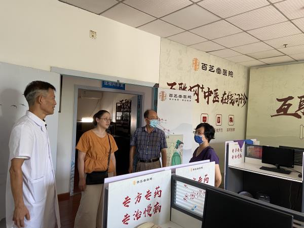 为积极推进我院与江西百芝堂中医药集团的深度合作,推动战略合作协议落地,实现合作共赢目标,我院附属医院院长唐晓玲率领金兰、杨林全两位主任医师于8月2日下午前往其下属南昌百芝堂医院,在百芝堂院长饶建跃及集团顾问蓝耀明的陪同下,参观了百芝堂医院的智慧中药房、线上中医药服务平台、线下诊室,并对如何更好地开展线上线下医疗服务活动进行了一次深入的座谈交流。