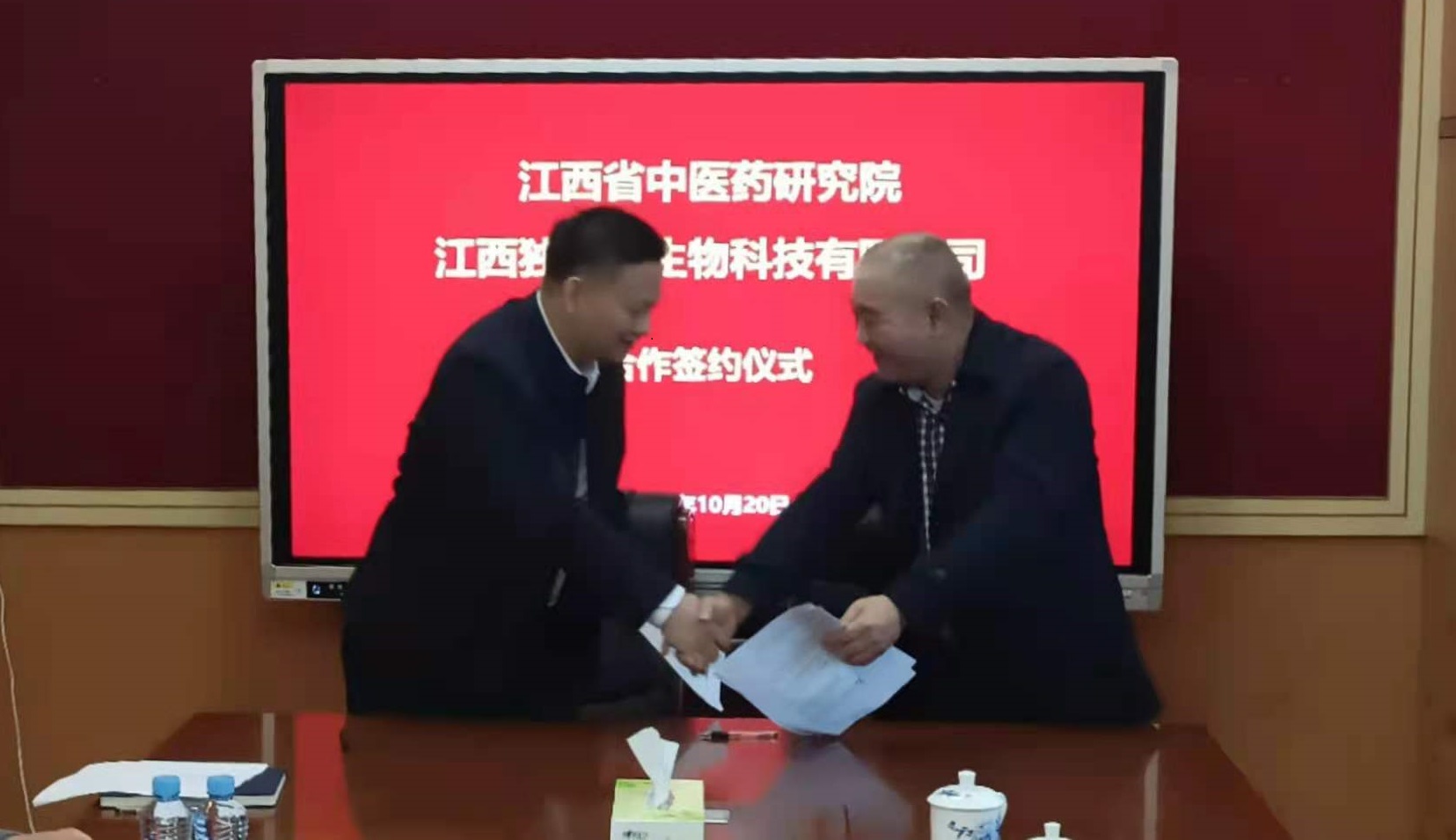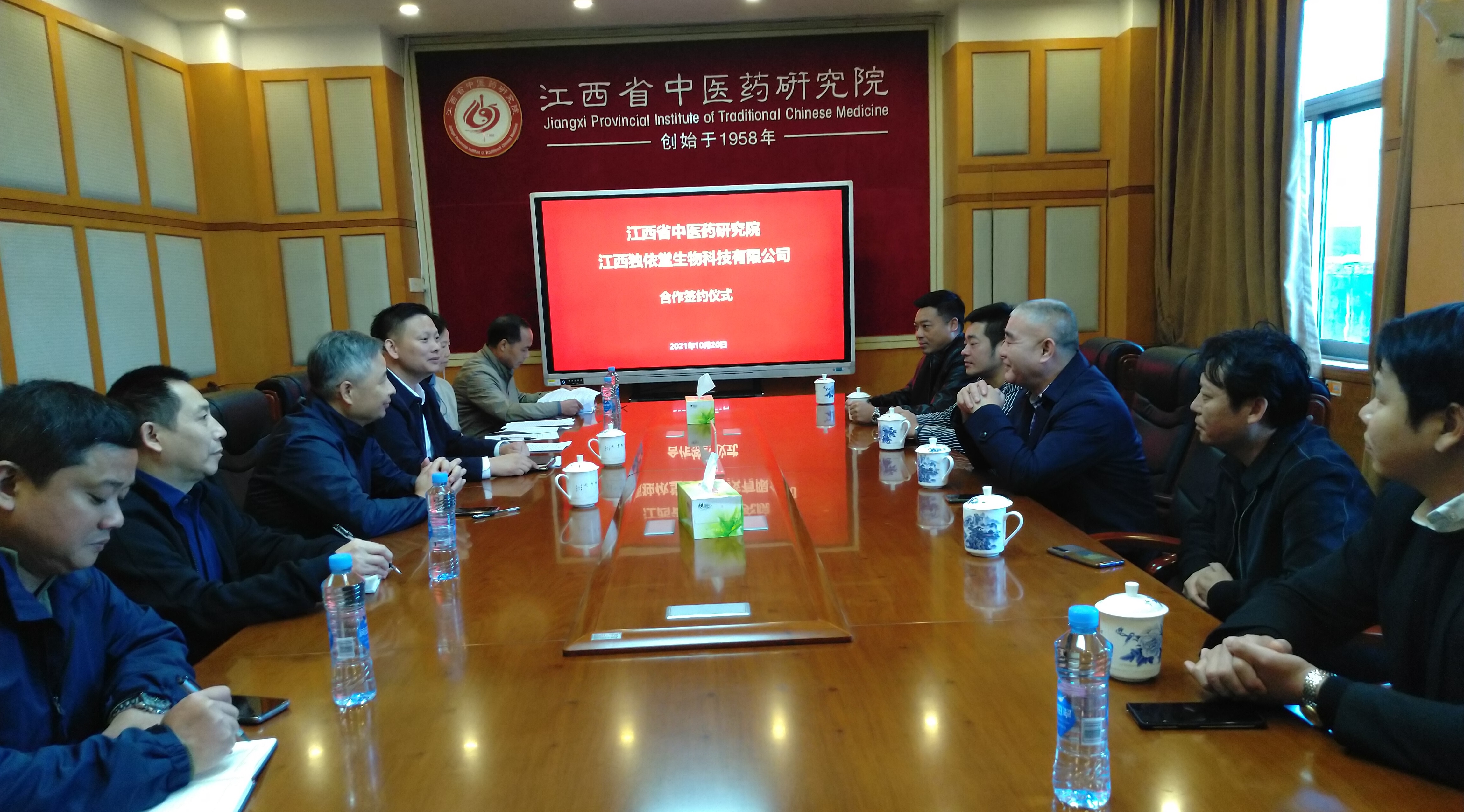 10月20日上午,我院与江西独依堂生物科技有限公司签订合作备忘录。院长何国平、院党委书记刘晓青,江西独依堂生物科技有限公司总经理曾爱忠,院科技开发中心、中药所、科技科等相关科室负责人参加签约仪式。
