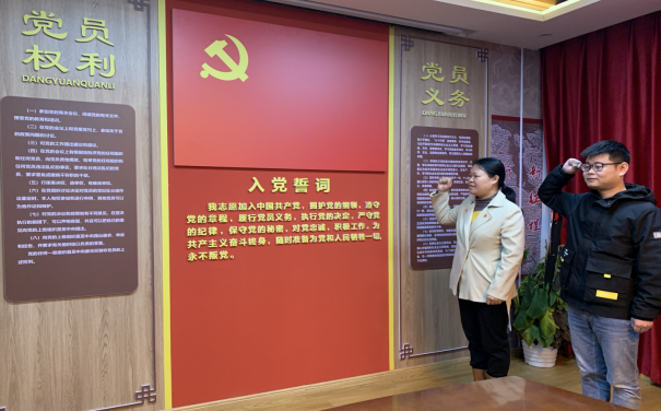 宣誓活动后,虞金宝同志为新入党的廖卫波同志带上了象征身份的党徽,并赠送了党史学习教育指定学习读本和笔记本。廖卫波同志表示将用自己的实际行动,践行今天的誓言,作为一名在建党一百周年之际加入中国共产党的新发展党员,自己倍感光荣。成为一名新发展党员不是意味着结束,恰相反,这是另一个的开始,要成为一名真正合格且优秀的党员不是一时,而是一世,是要在思想上不断进步,在行动上更积极主动。政治理论进步,行动没有作为,那是空想;行动作为积极,政治思想欠缺,那将会滞后,在今后的学习工作中将时刻牢记为人民服务的宗旨意识。