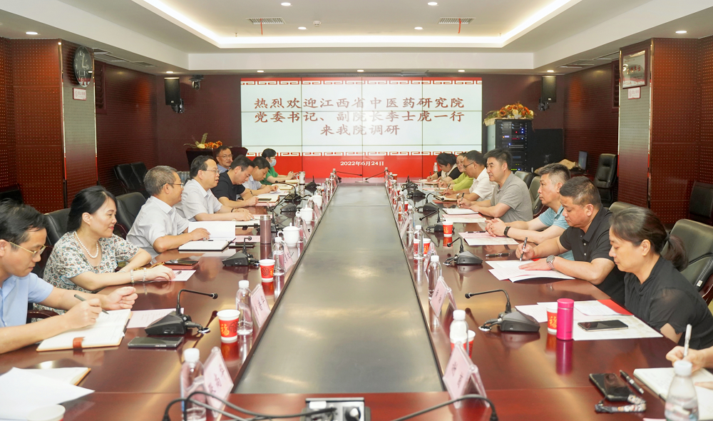 6月24日,我院党委书记、副院长李士虎带领班子成员及相关科室负责人赴湖南省中医药研究院考察学习。湖南省中医药研究院党委书记、院长葛金文,党委副书记、副院长刘平安,党委委员、副院长刘柏炎出席座谈会。湖南省中医药研究院办公室、人事处、科技处、附属医院等相关处室负责同志参加座谈。