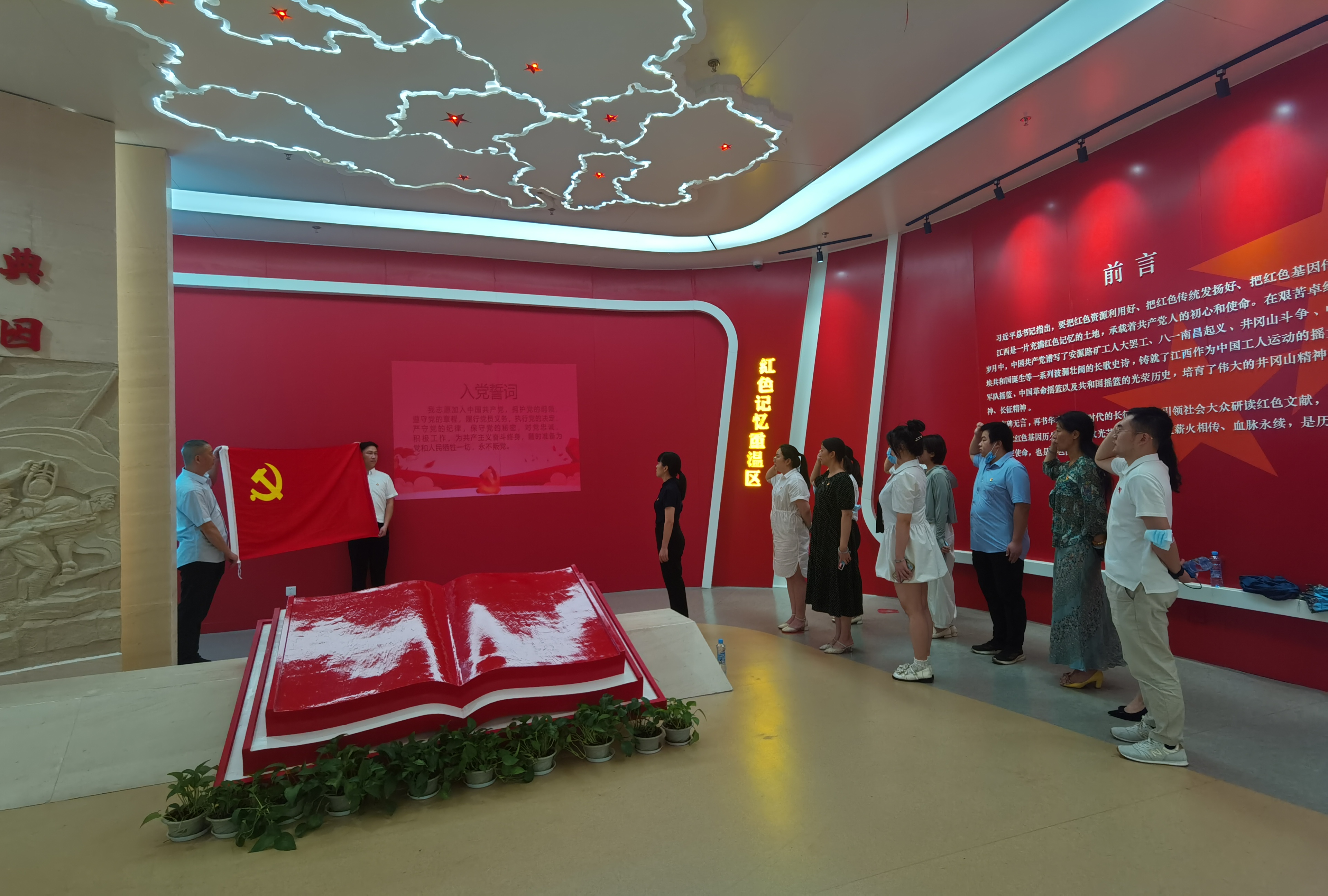 活动中,全体党员围绕鲜红的党旗重温了入党誓词,并跟随讲解员认真参观阅读了红色历史文化书籍,聆听了党史故事,追寻红色革命足迹,接受精神洗礼。一张张生动的图片,一段段真实的记录,一个个感人的革命故事,再次涌上每名党员的心扉,特别是讲解员对“项与年自敲门牙当乞丐”历史革命故事的精彩讲解,进一步坚定了每名党员践行初心使命决心。