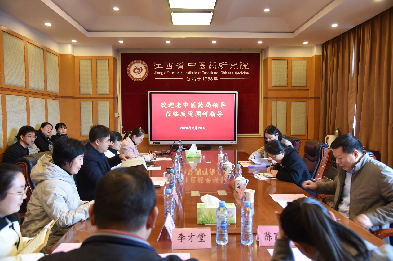 2月28日,省中医药管理局科教处处长江蓉带队,副处长周盛大、三级主任科员汪建芬一行3人来我院调研中医药科研工作,会议由副处长周盛大主持。我院党委书记李士虎、院长彭日煌,相关科室负责人和科研平台负责人参加调研。