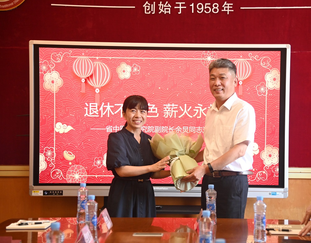 李士虎书记代表院党委对余炅副院长数十年的辛勤付出表示衷心的感谢和崇高的敬意,并对其秉持的政治素养和优良作风给予了高度赞扬,他表示,余炅副院长工作期间恪尽职守、勤勉尽责,在见证中研院变迁的同时,也把最美好的青春毫无保留的奉献给了中医药事业,是全院干部职工学习的楷模。希望他离岗不离心、退休不褪色,在享受退休生活的同时,继续发挥余热,积极为单位发展建言献策,将中医药事业薪火相传。衷心祝愿余炅同志保重身体,幸福安康,退休生活丰富多彩。