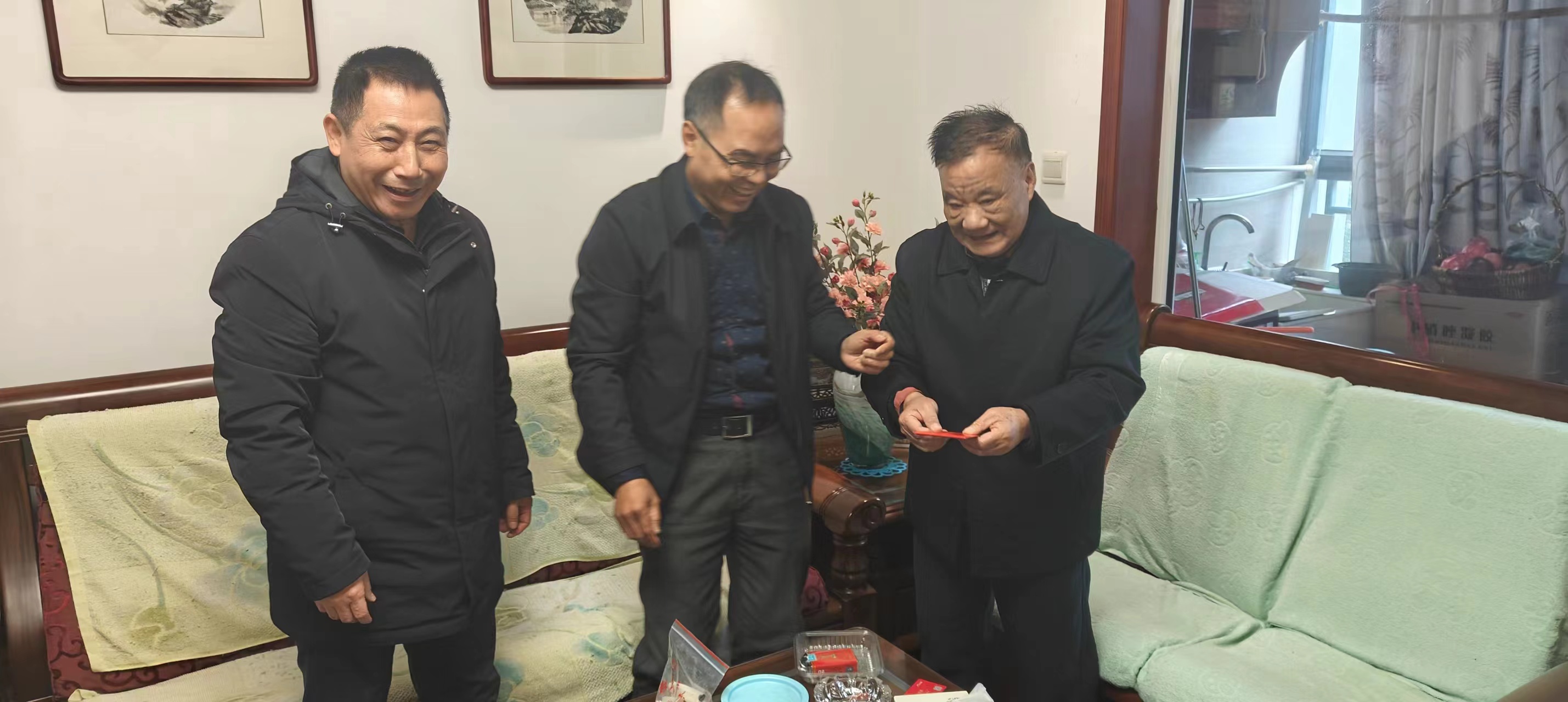 在退休老干部家中,院领导悉心询问他们的身体、生活和家庭状况,并简要介绍了单位的发展情况,认真倾听他们的意见和建议。同时感谢老同志们为中医药事业薪火相传作出的不懈贡献,也希望老干部们保重身体,发挥智慧和余热,继续为省中研院各项事业发展建言献策。