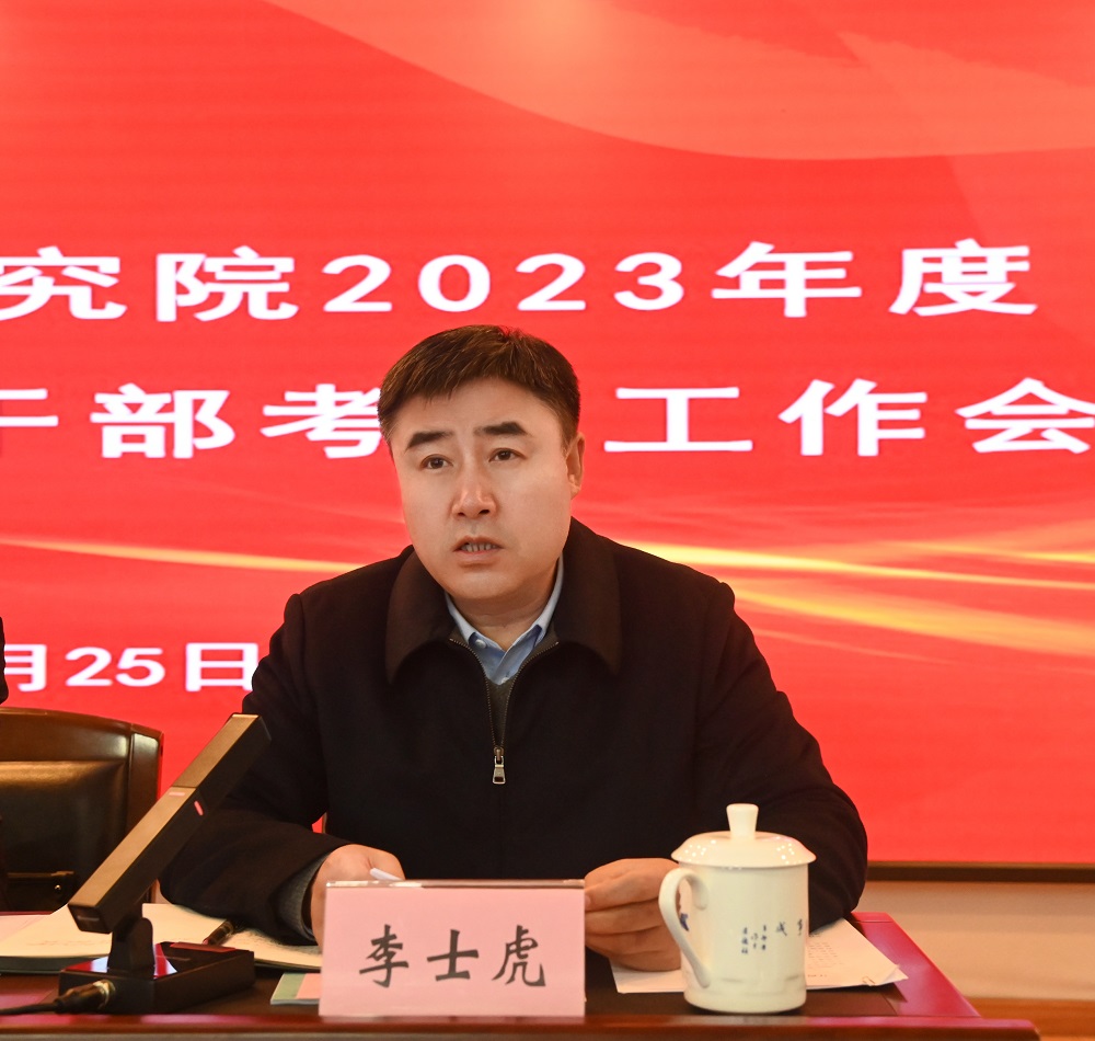 李士虎代表院领导班子从政治思想建设、党风廉政建设、重点工作和目标任务落实情况等方面对2023年度工作进行总结汇报,并作个人述职述德述廉报告。