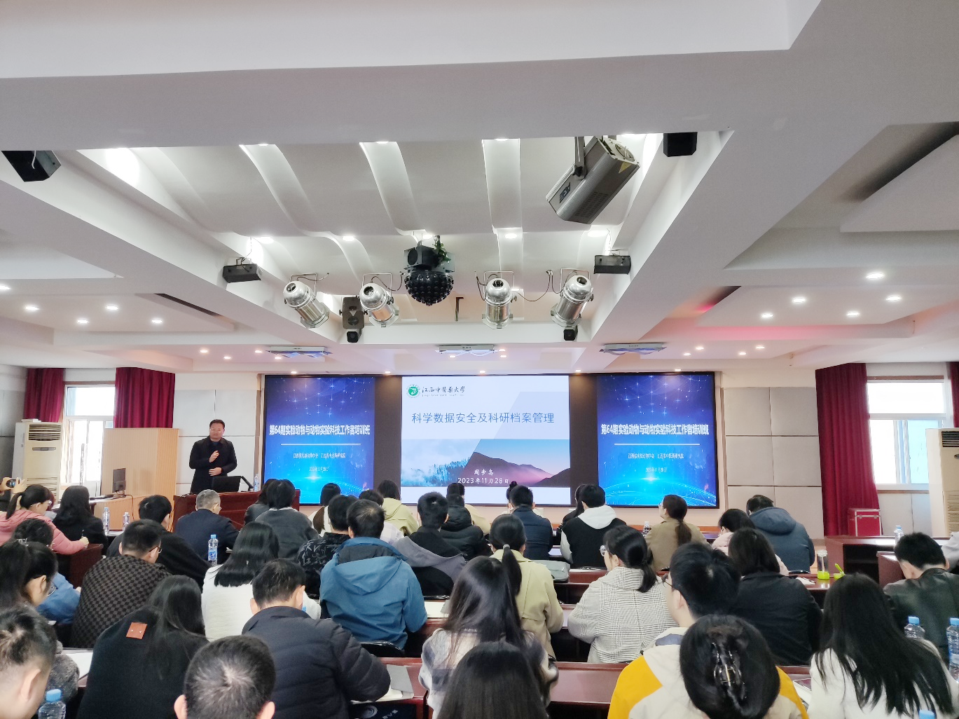 江西省实验动物学会为全院专业技术人员进行了实验动物与动物实验科技工作者培训。江西中医药大学周步高教授、南昌大学许宝华教授、江西省职业病防治研究院周银平研究员等专家分别就科研数据安全、动物实验与生物安全、实验动物在中医药学中的应用、动物实验质量控制、实验动物福利伦理、动物实验操作技术、人类疾病动物模型等方面进行精彩授课。培训结束后进行了现场考核。