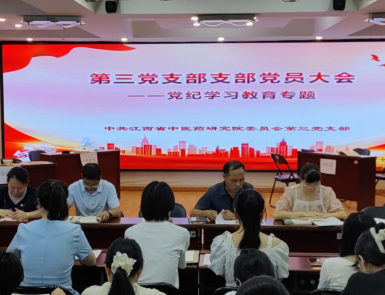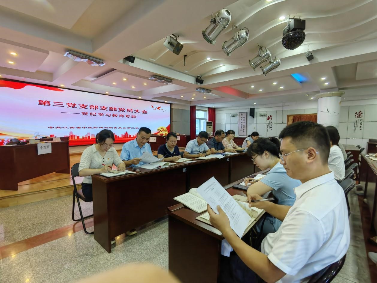 为学习贯彻党的二十届三中全会精神,进一步增强第三党支部及青年干部党纪意识,以更丰富的活动形式开展党日活动。7月30日上午,第三党支部召开党员大会暨“药海波澜”主题党日活动。党委委员、副院长虞金宝和唐晓玲出席会议,院纪检工作人员旁听。