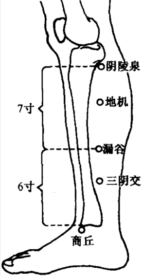 ③阴陵泉(健脾化湿利水): 小腿内侧,胫骨内侧髁后下方凹陷处。按揉,利水渗湿。